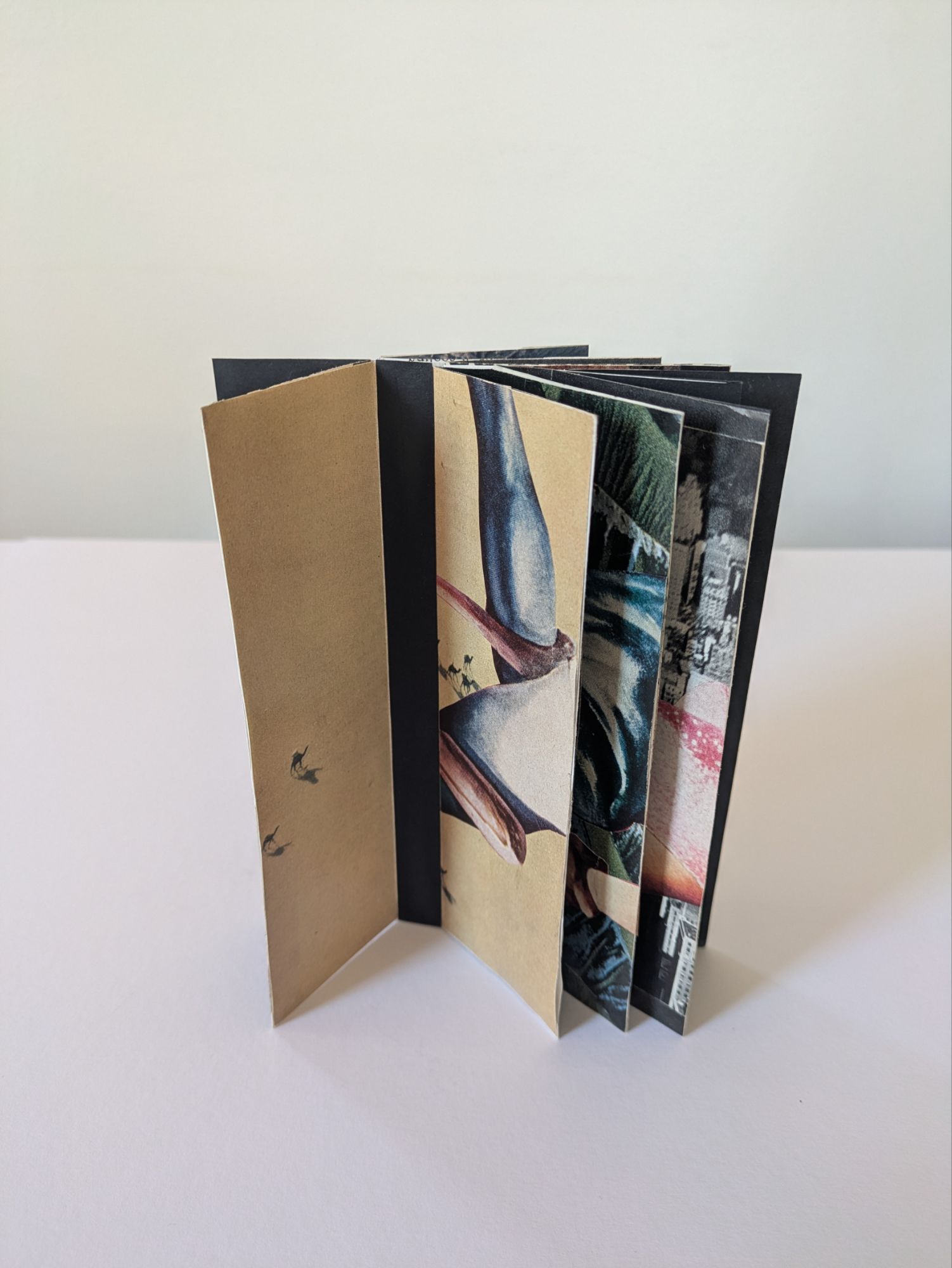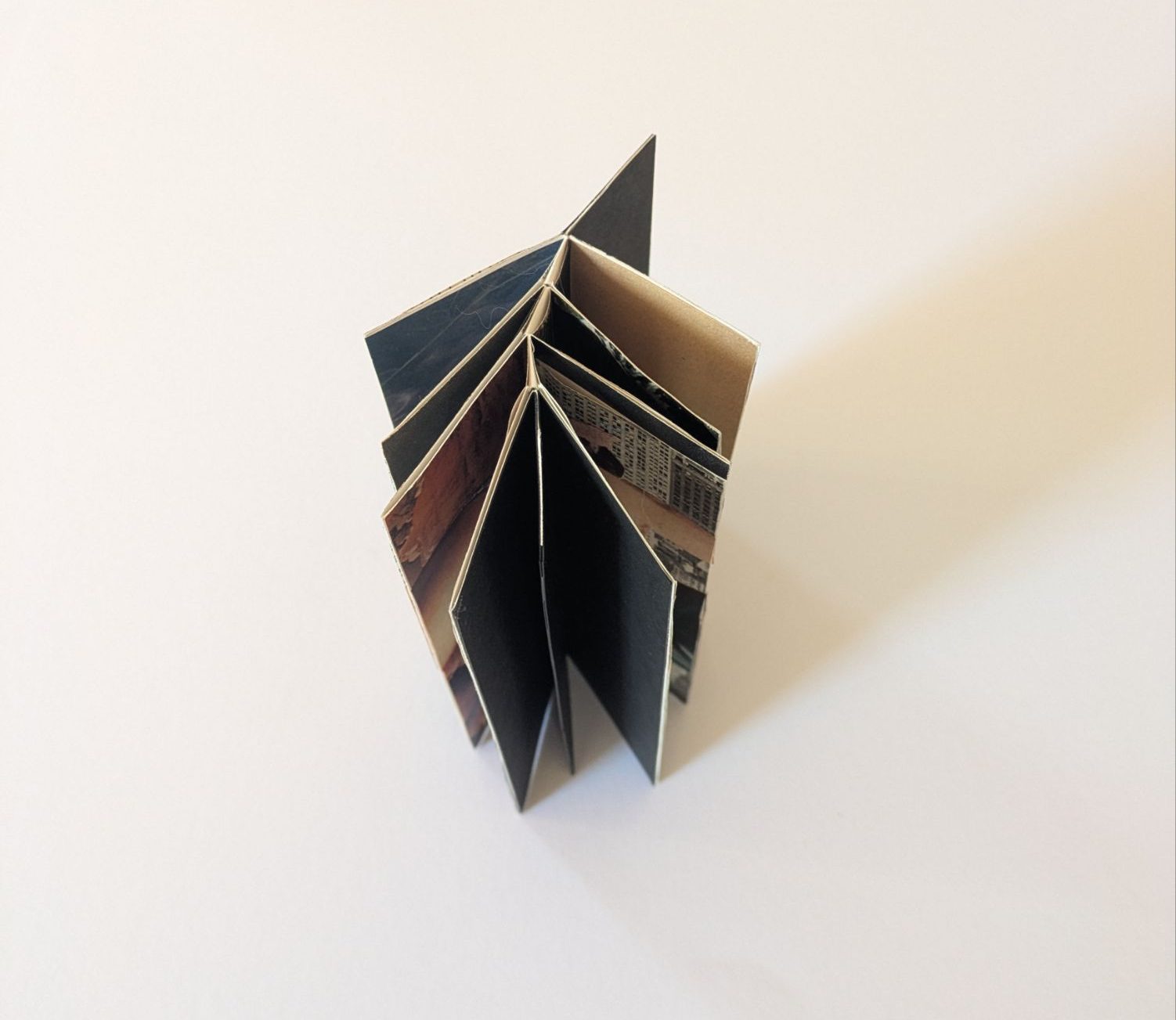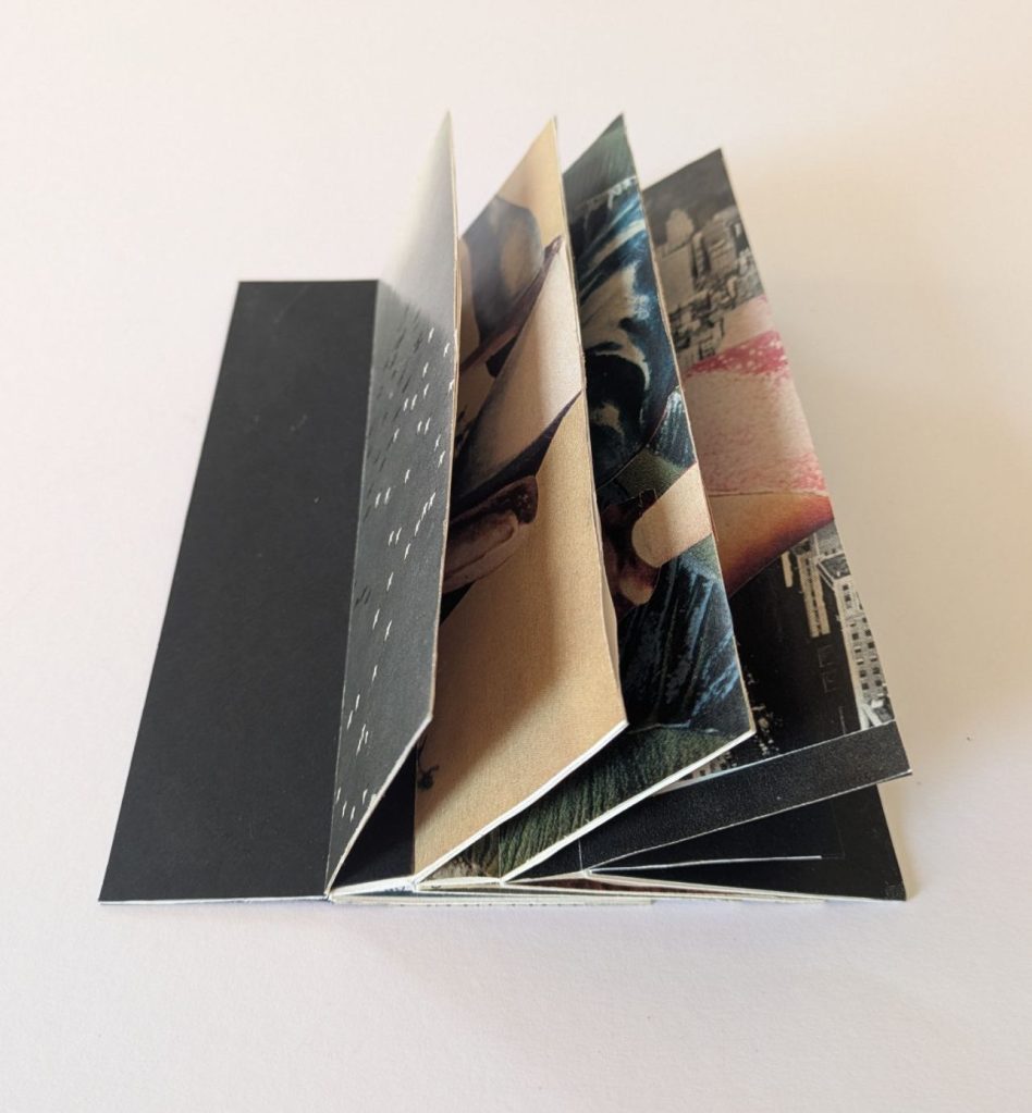 This one-sheet book structure is called the Fishbone Fold. It can be both displayed upright and laid flat to turn the pages like a traditional book. The cascading images give a tease of what’s to come.