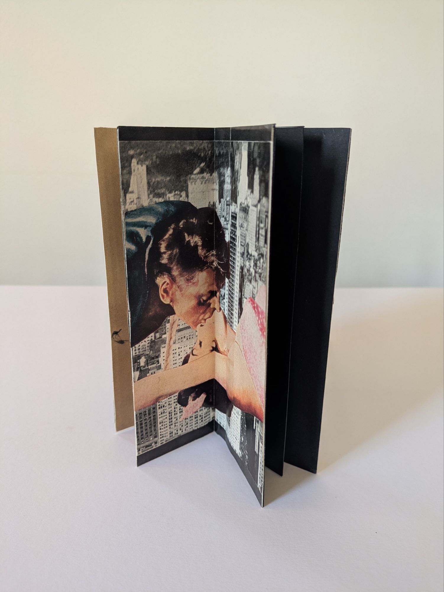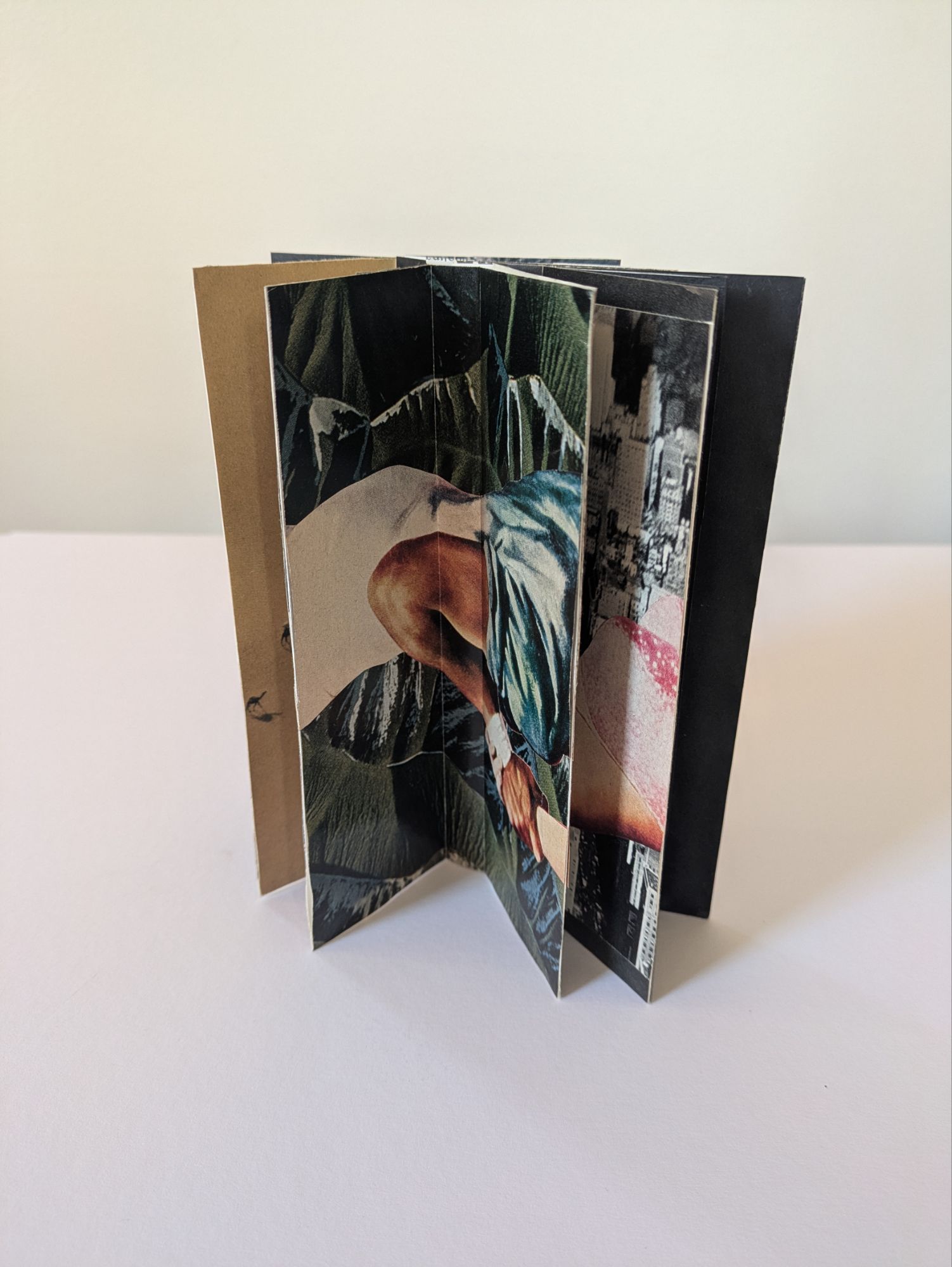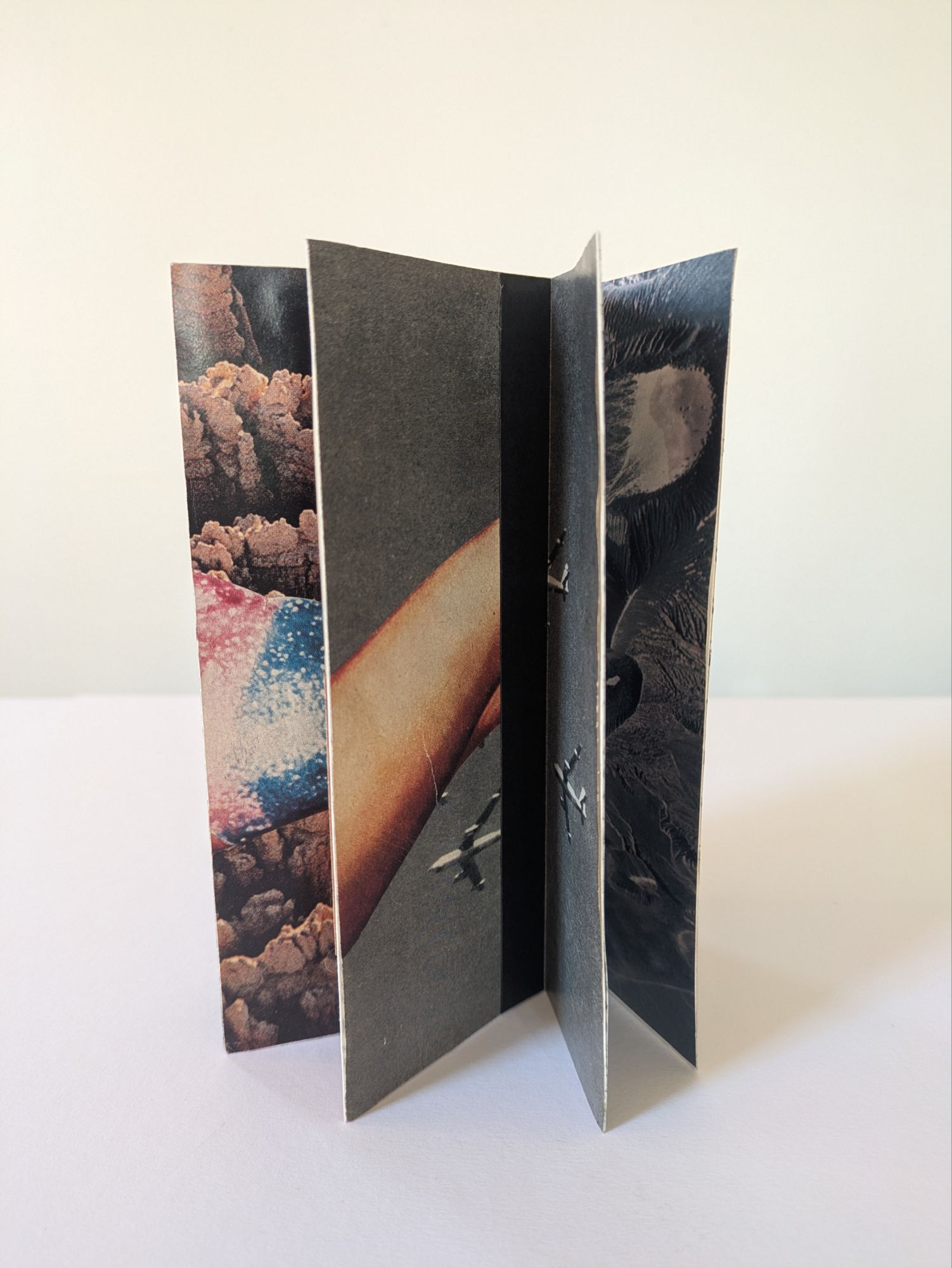 This one-sheet book structure is called the Fishbone Fold. It can be both displayed upright and laid flat to turn the pages like a traditional book. The cascading images give a tease of what’s to come.